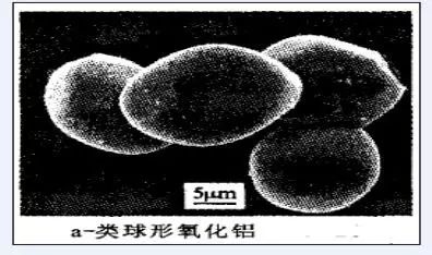 根据不同的烧成控制,氧化铝的晶体形貌可以呈现出蠕虫状、片状、球形(类球形)等形貌,由于球型颗粒的氧化铝表面能小,填入基体中粘度小,更容易均匀分散于基体中,而且填充量相对于其他形状的大,更有利于提高硅胶的导热性,因此,当前在高导热绝缘材料中填充的氧化铝颗粒形貌主要以球形。