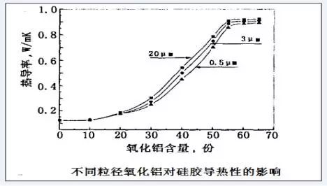 不同粒径的氧化铝对硅胶的导热率的影响如下:
