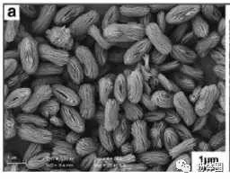 纺锤状粉体往往是由片状结构自组装而形成的三维结构,因其在保持了片状结构比表面积较大的优点的同时,也具有了三维结构的优点,这就使得其吸附性能更加出色,其形貌如下: